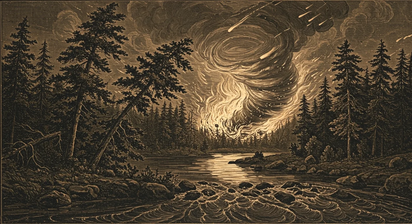 On the night of October 8, 1871, a cyclonic firestorm of biblical proportions swept through the lumber town of Peshtigo, Wisconsin. It was a "fire tornado"—a phenomenon where superheated air creates a vortex capable of lifting houses, tossing locomotives, and incinerating biological matter instantly.
